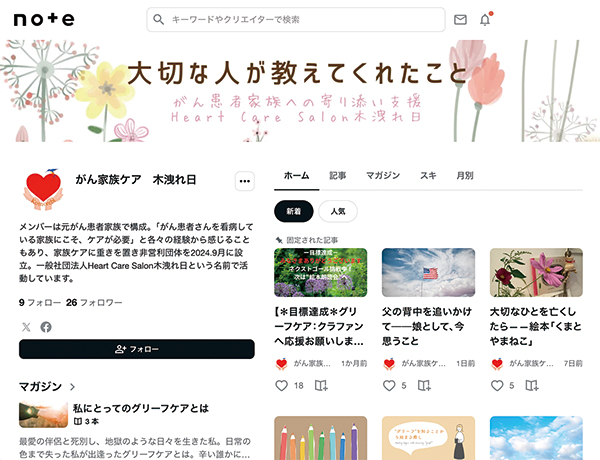 ・note インターネット上のメディアプラットフォーム「note」で〝メンバーが交代で自らの体験やグリーフケアの知識などさまざまな情報を発信しています。